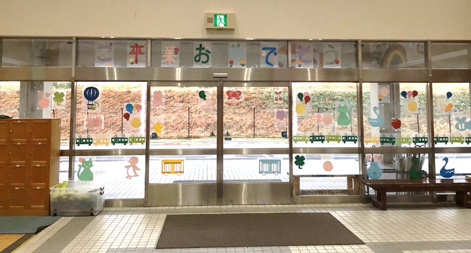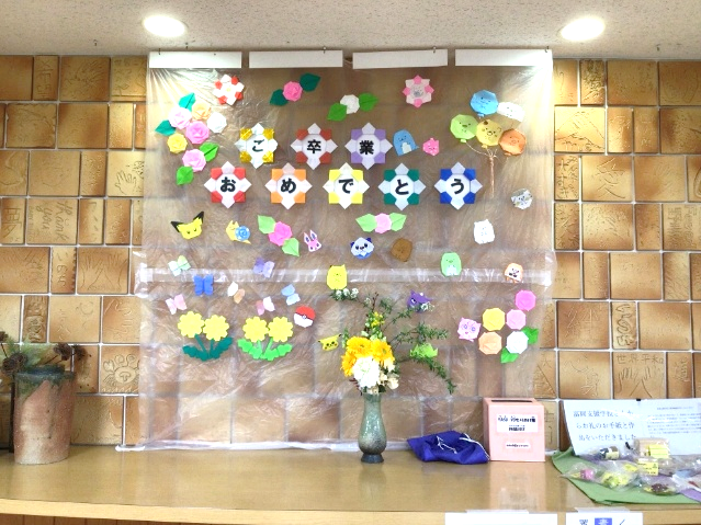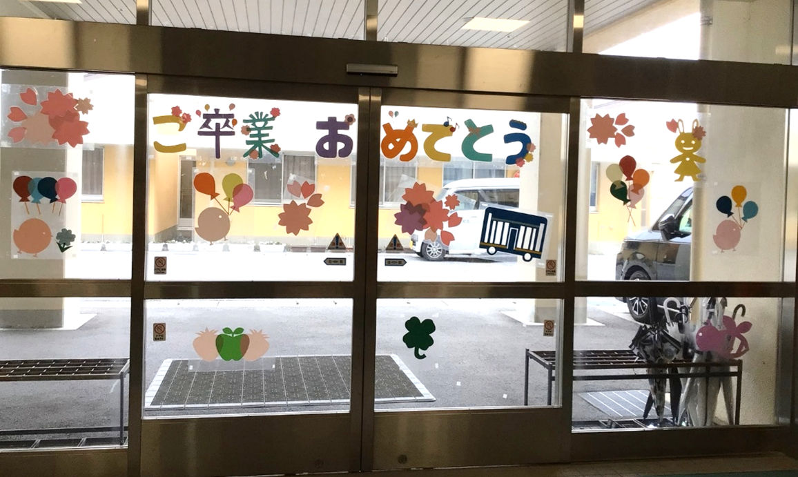 2月20日 卒業飾り付けを行いました! 2月ももう終わり、締めくくりの3月になりましたね!2月20日には、「YASU-YOもりあげ隊」の皆さんが小中高の玄関に『卒業』の飾りつけを行って下さいました。それぞれの玄関には「ご卒業おめでとう」の文字と明るい装飾が飾ってあり、卒業生へのエールが込められている素敵な装飾となっています。来校された際には、ぜひご覧ください。